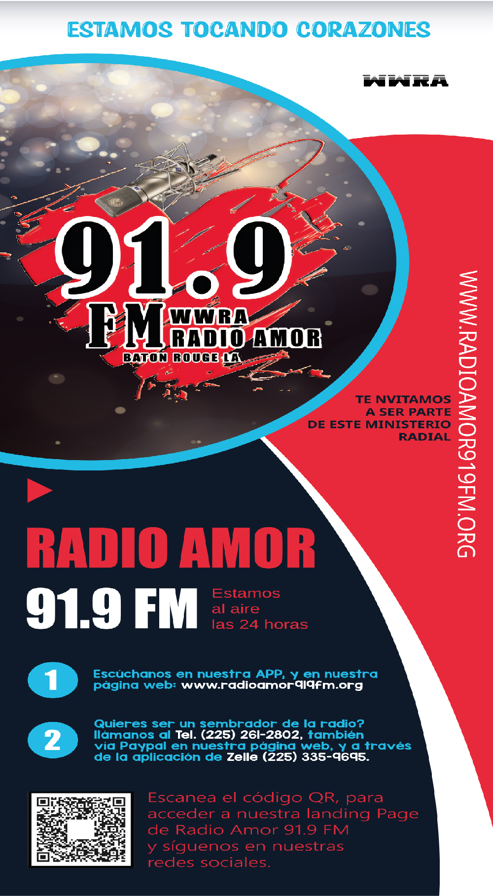 FAMILY RADIO, 91.9 FM is a non-profit broadcaster. We are supported by contributions from our audience. We ask you to help us by clicking on “DONATE”, below. Thank you! Radio Amor is a non-profit organization. And we are accredited by the government and the state of Louisiana to give you a report of your contribution, if you request it at the end of the year, so that you can report it as a contribution and it will be deducted from your income so that you pay less taxes.